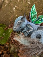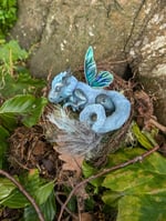 The hatchling's nest is around 14cm in diameter. The hatchling is removable, and features poseable limbs and an armature in the body so the tail can also be posed. It is sculpted by hand and as such is entirely unique